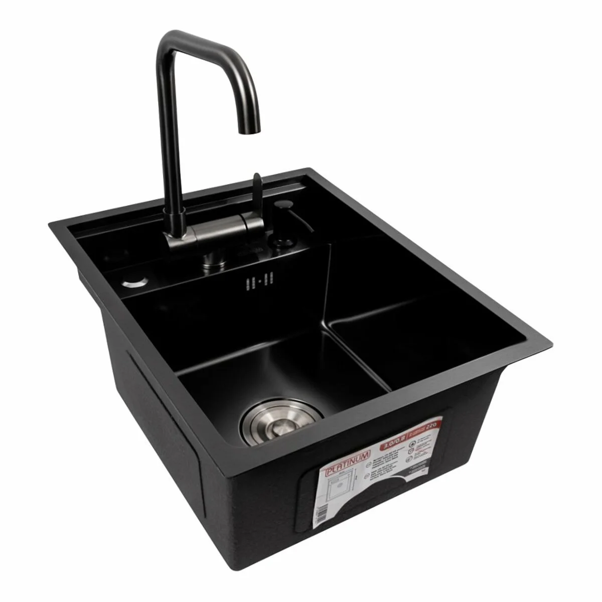 Кухонна мийка CM 40x50 прихована PVD чорна Platinum Handmade — це ідеальне поєднання стилю та функціональності! Вона не тільки забезпечить вам комфорт під час роботи на кухні, але й стане стильним акцентом, додаючи розкоші вашому інтер’єру.