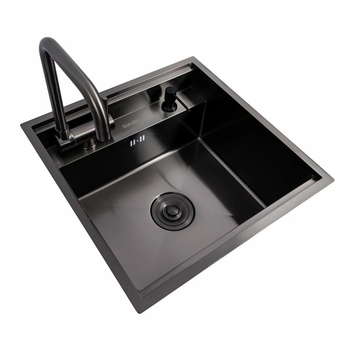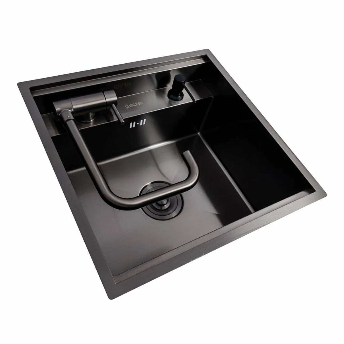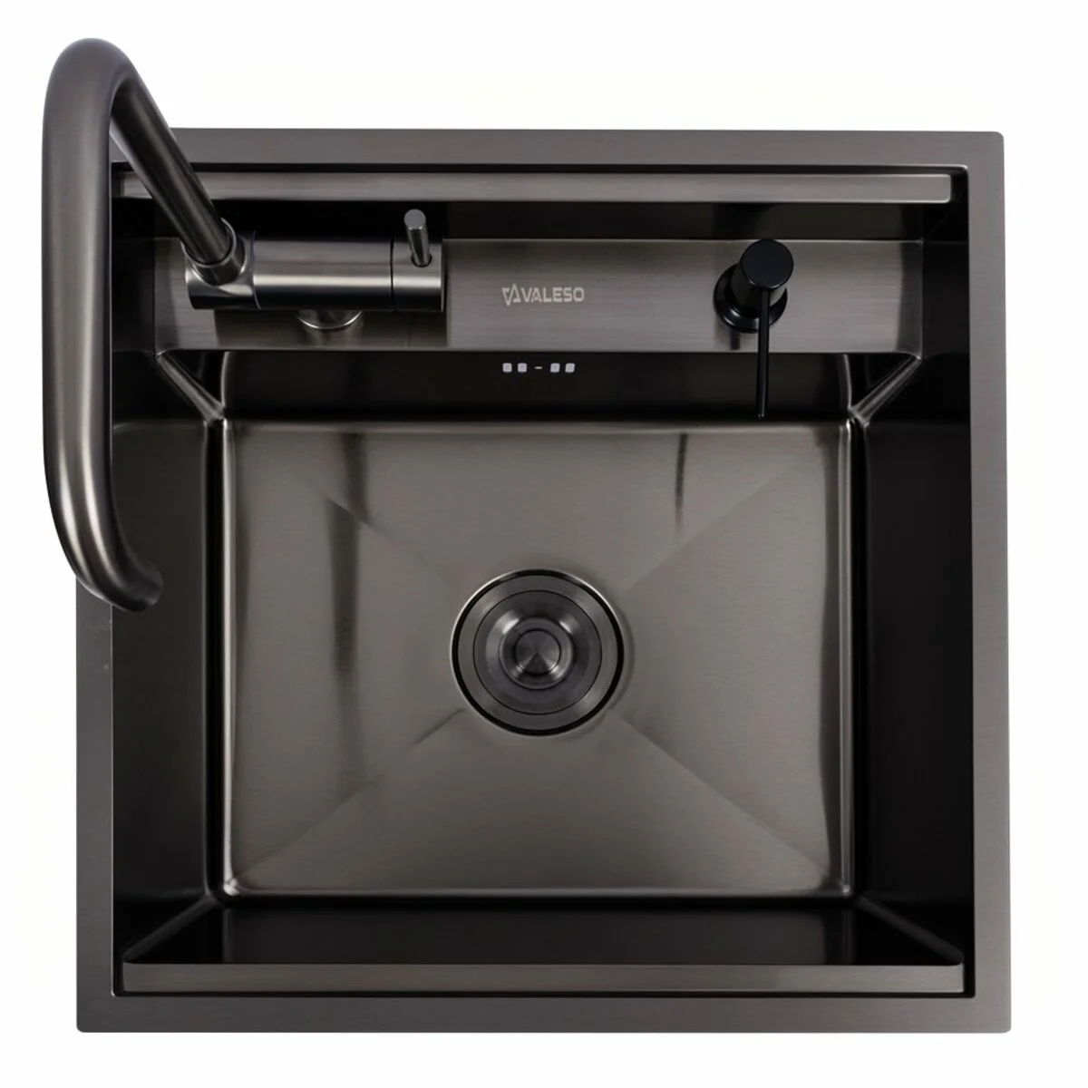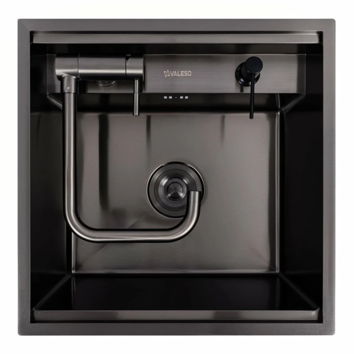 Кухонна мийка CM 50*50 прихована PVD чорна VALESO Handmade (змішувач в комплекті) — вишуканість та практичність для вашої кухні!