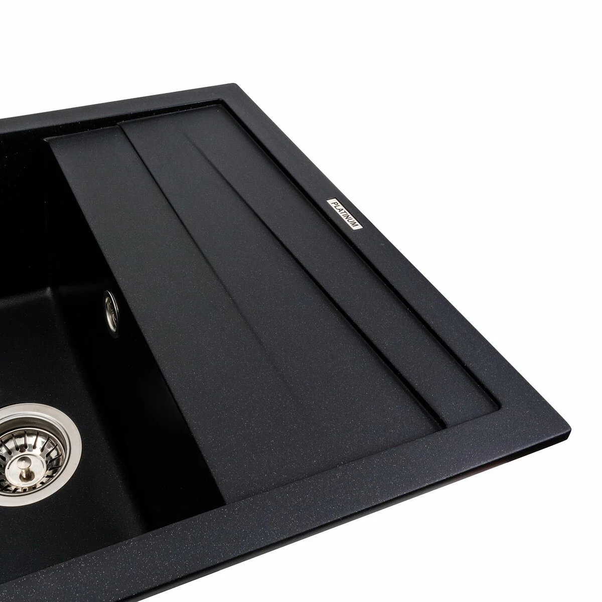Гранітна мийка для кухні 7050 CASCADA кольору Чорний металік українського бренду Platinum - це стильна, врізна, прямокутна мийка, яка своїм виглядом чудово доповнить дизайн вашої кухні. Мийка на 80% складається з кварцу та на 20% з надзвичайно твердої акрилової смоли, завдяки чому невибаглива у догляді, а також має великий запас міцності.