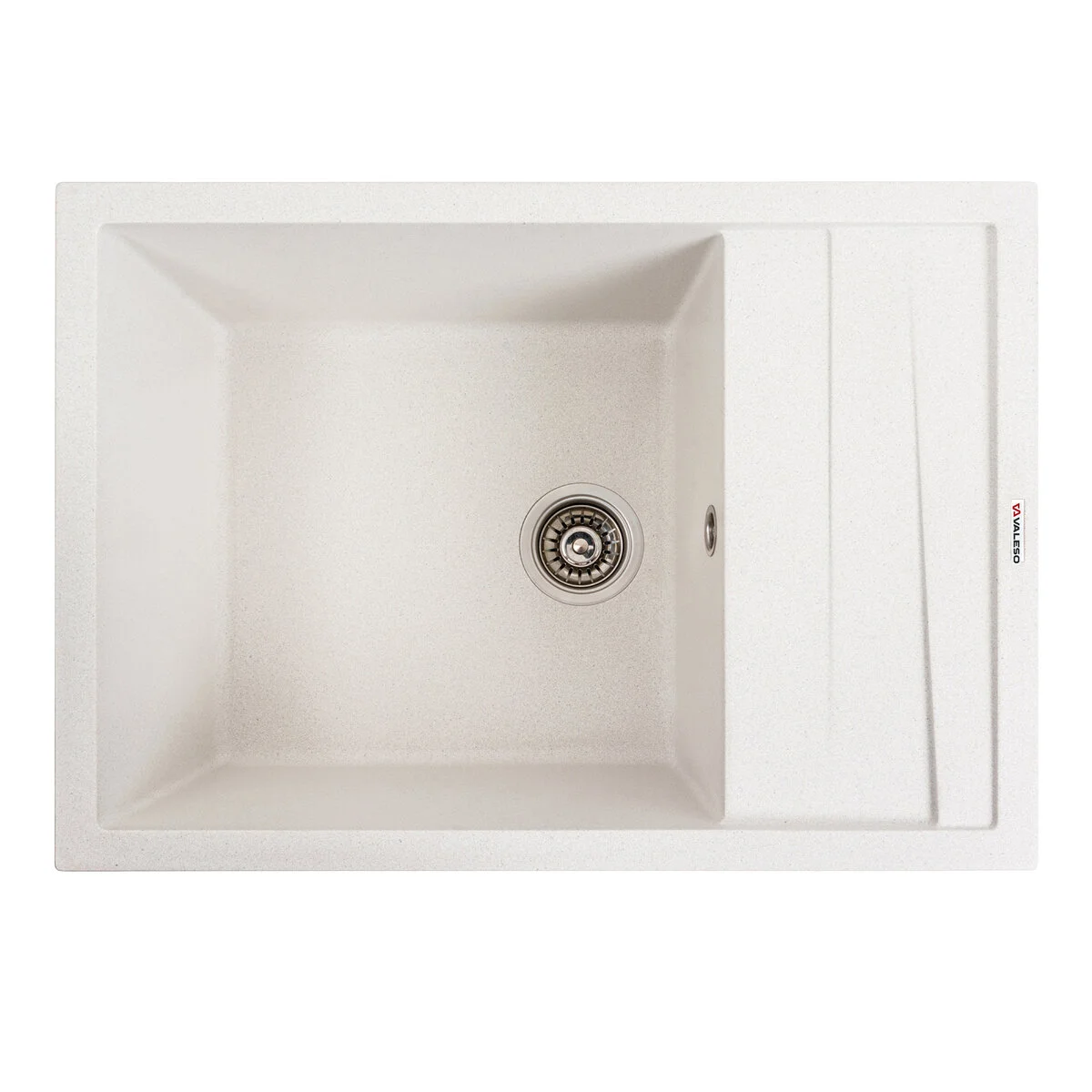 Гранітна мийка для кухні 7050 CASCADA кольору Білий в крапку українського бренду VALESO - це стильна, врізна, прямокутна мийка, яка своїм виглядом чудово доповнить дизайн вашої кухні. Мийка на 80% складається з кварцу та на 20% з надзвичайно твердої акрилової смоли, завдяки чому невибаглива у догляді, а також має великий запас міцності.