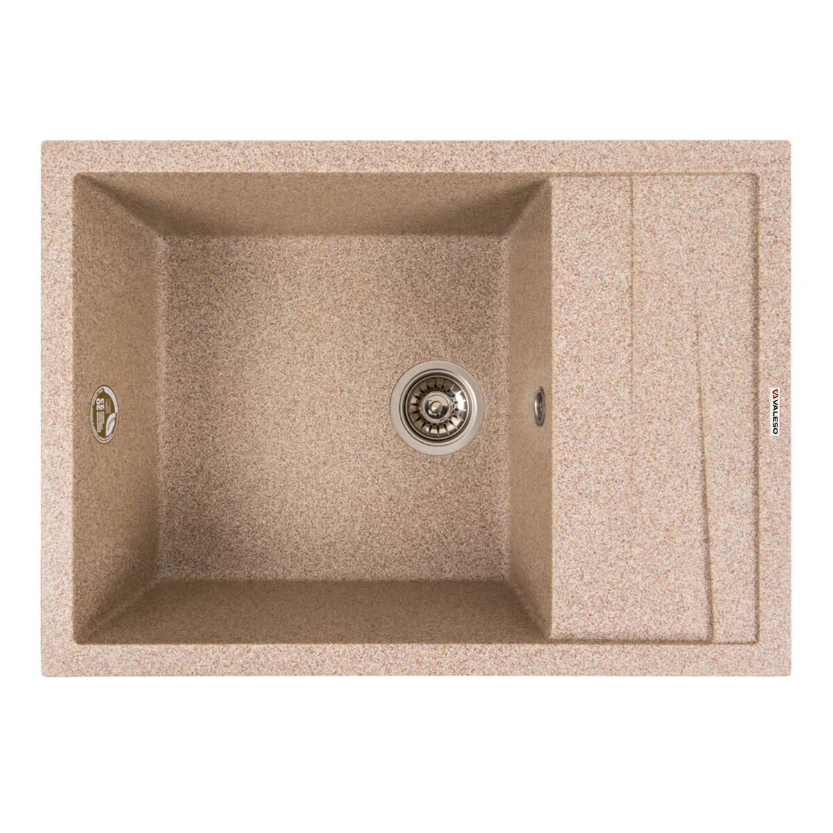 Гранітна мийка для кухні 7050 CASCADA кольору Карамель українського бренду VALESO - це стильна, врізна, прямокутна мийка, яка своїм виглядом чудово доповнить дизайн вашої кухні. Мийка на 80% складається з кварцу та на 20% з надзвичайно твердої акрилової смоли, завдяки чому невибаглива у догляді, а також має великий запас міцності.