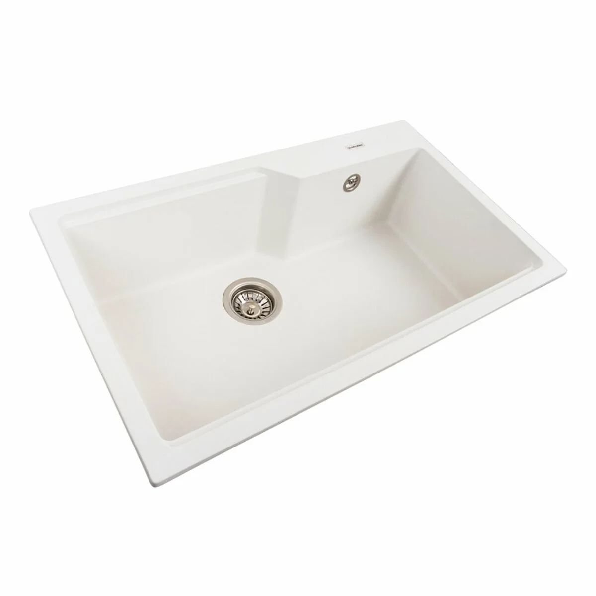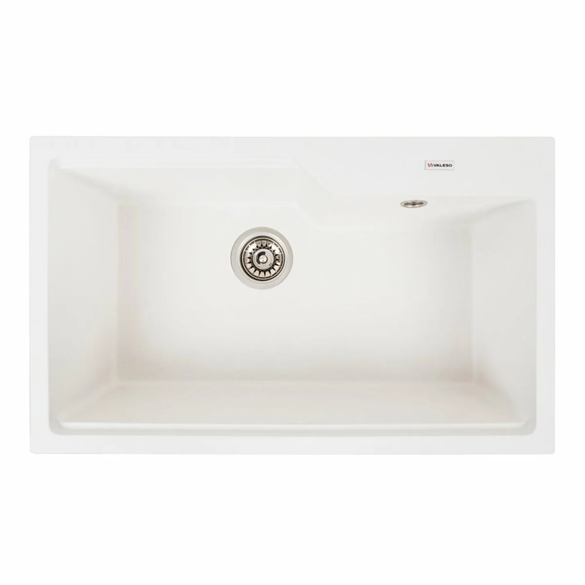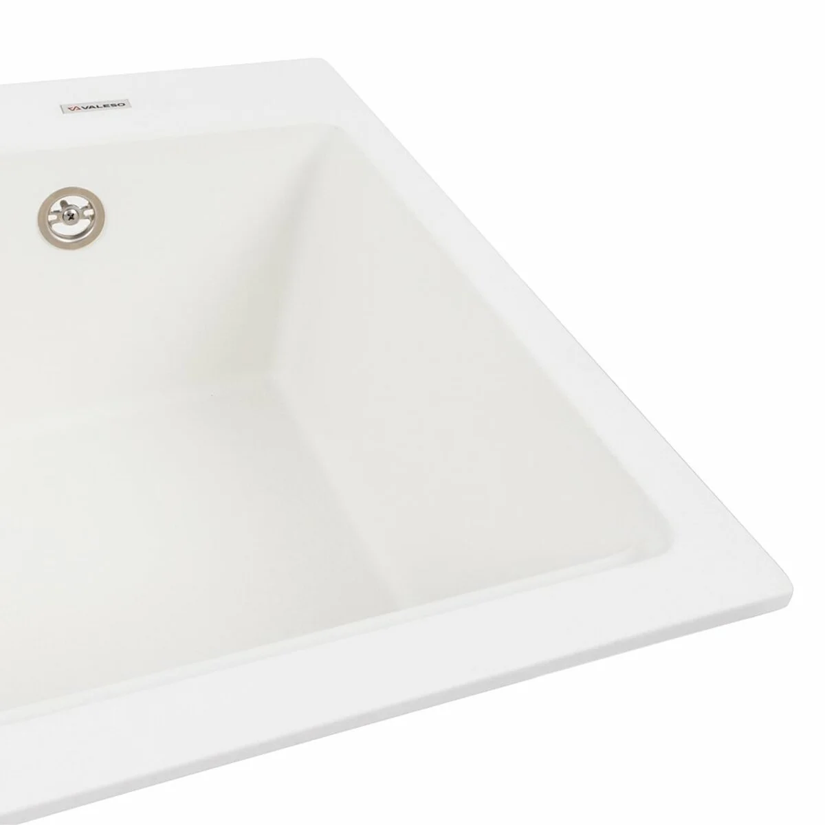 Гранітна мийка для кухні 7545 NIKA кольору Білосніжна українського бренду VALESO - це стильна, врізна, прямокутна мийка, яка своїм виглядом чудово доповнить дизайн вашої кухні. Мийка на 80% складається з кварцу та на 20% з надзвичайно твердої акрилової смоли, завдяки чому невибаглива у догляді, а також має великий запас міцності.
