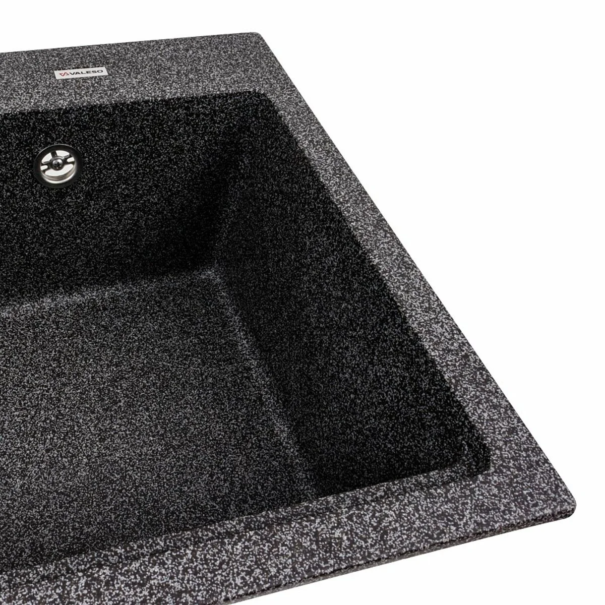 Гранітна мийка для кухні 7545 NIKA Графіт українського бренду VALESO - це стильна, врізна, прямокутна мийка, яка своїм виглядом чудово доповнить дизайн вашої кухні. Мийка на 80% складається з кварцу та на 20% з надзвичайно твердої акрилової смоли, завдяки чому невибаглива у догляді, а також має великий запас міцності.