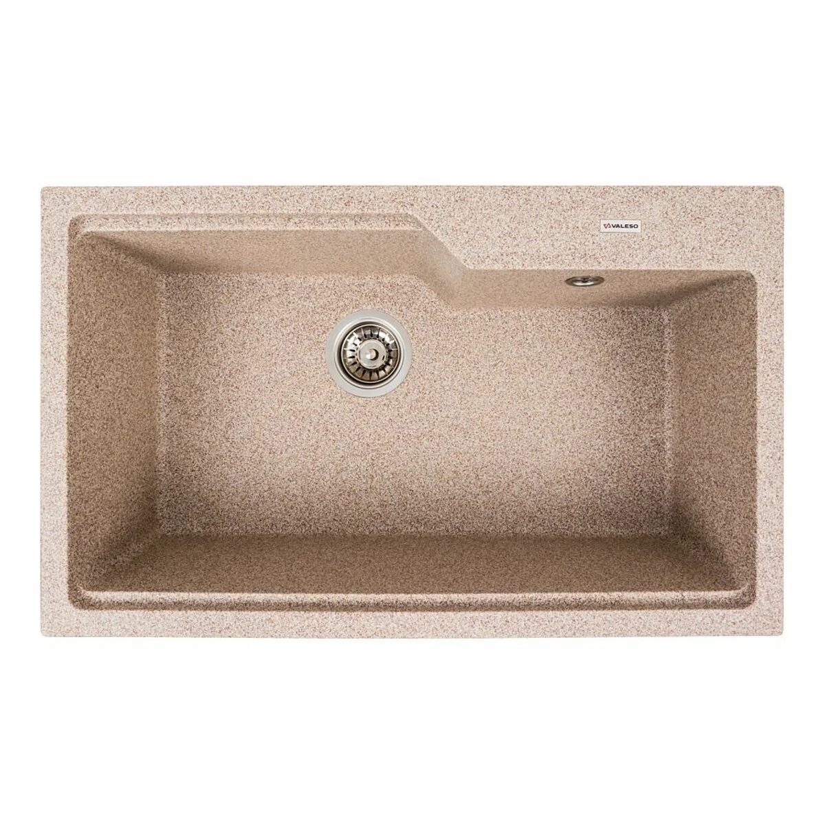 Гранітна мийка для кухні 7545 NIKA Карамель українського бренду VALESO - це стильна, врізна, прямокутна мийка, яка своїм виглядом чудово доповнить дизайн вашої кухні. Мийка на 80% складається з кварцу та на 20% з надзвичайно твердої акрилової смоли, завдяки чому невибаглива у догляді, а також має великий запас міцності.