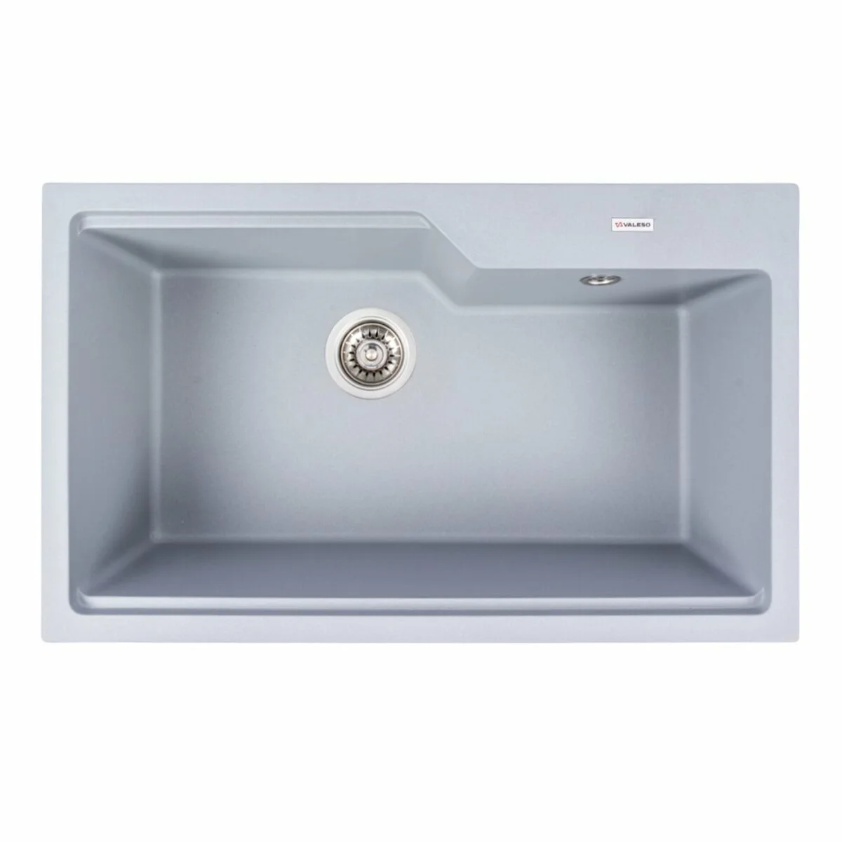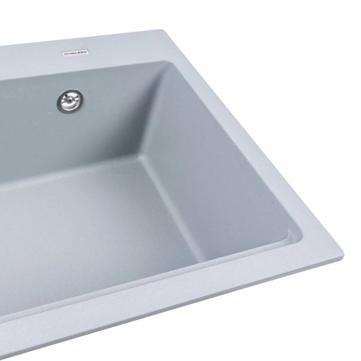 Гранітна мийка для кухні 7545 NIKA Сірий металік українського бренду VALESO - це стильна, врізна, прямокутна мийка, яка своїм виглядом чудово доповнить дизайн вашої кухні. Мийка на 80% складається з кварцу та на 20% з надзвичайно твердої акрилової смоли, завдяки чому невибаглива у догляді, а також має великий запас міцності.