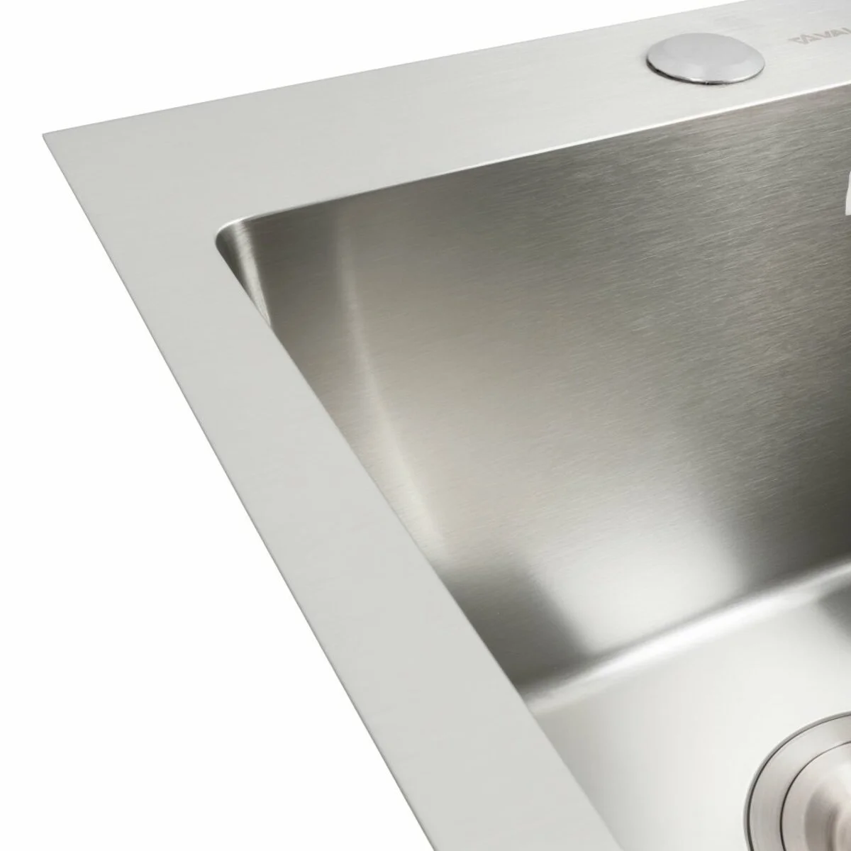 Мийка для кухні VALESO виготовлена з нержавіючої сталі SUS 201товщиною 3.0/0.8, що гарантує її довговічність. Покриття мийки захищає її від подряпин потемніння та нальоту. Така кухонна мийка не боїться високих температур та впливу засобів побутової хімії.