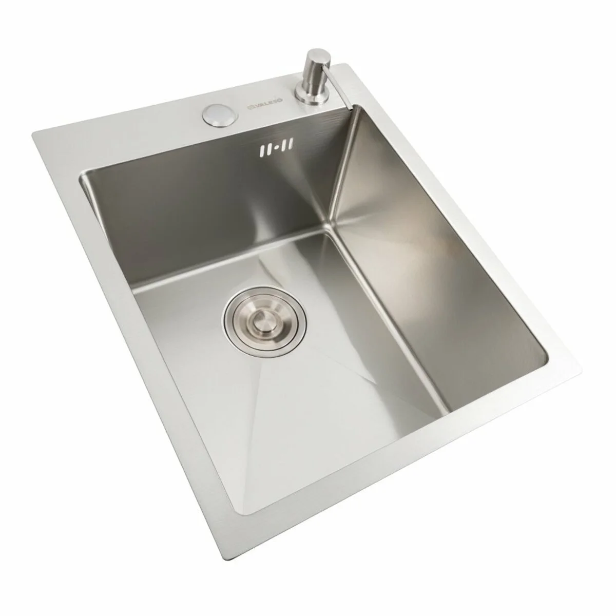 Кухонна мийка нержавійка 40*50 VALESO Handmade(сифон круглий 3,0/0,8) це відмінне стильне рішення для кухні невеликих розмірів (400x500x230). Лаконічний дизайн форми добре пасує різним інтер’єрам кухні.