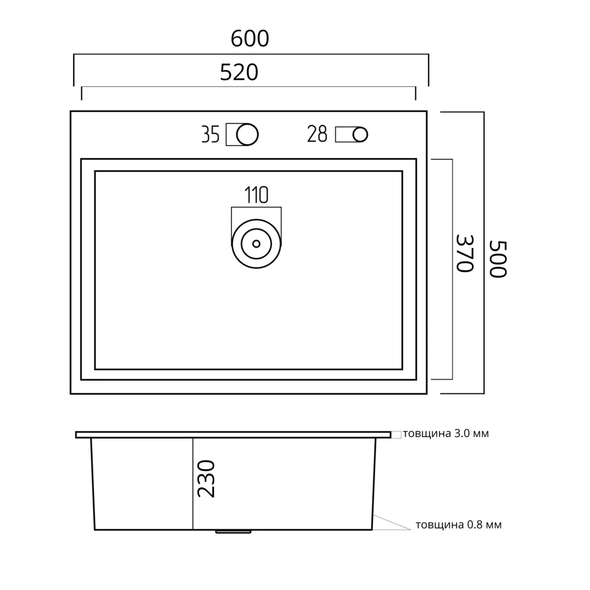 Товщина сталі : 3.0/0.8 мм