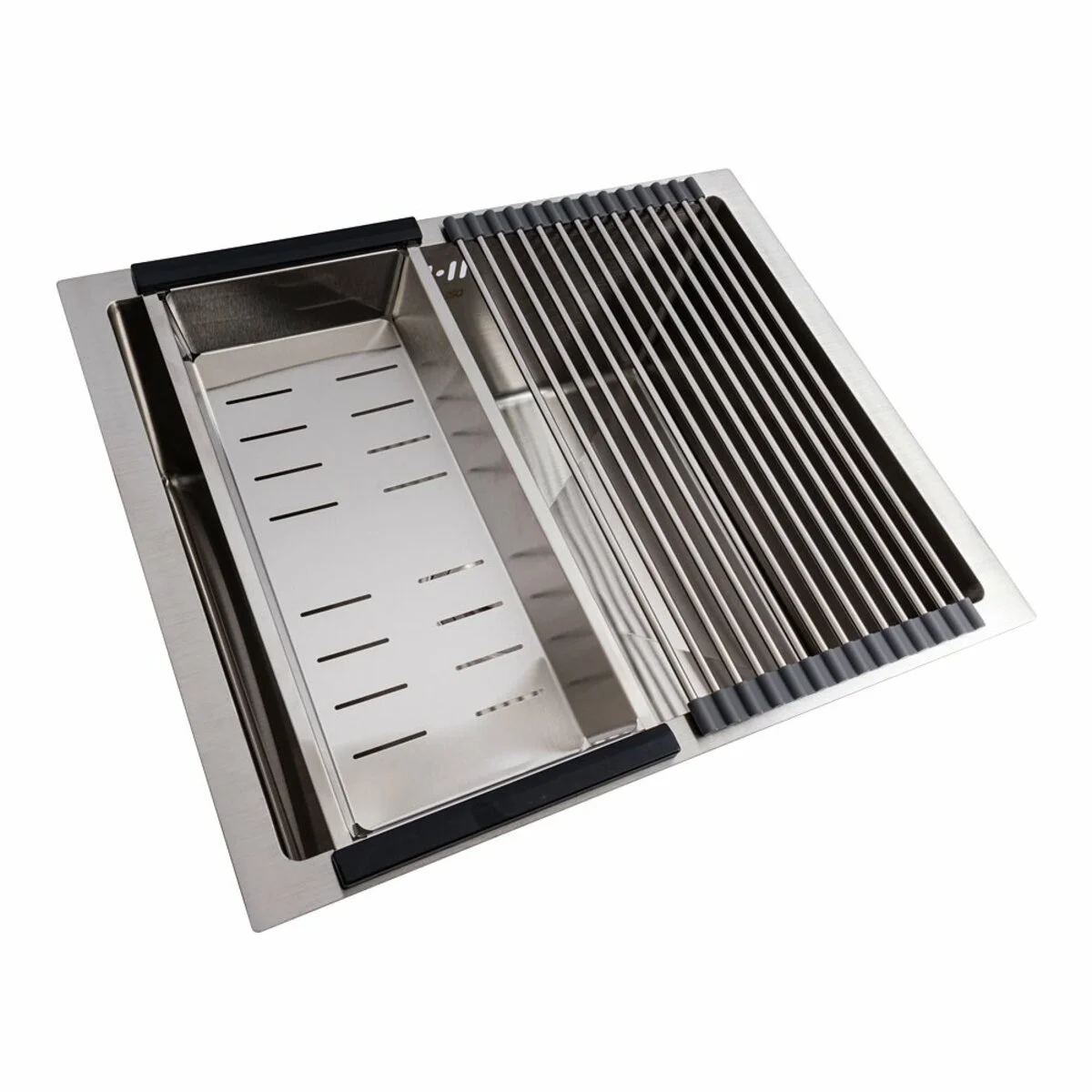 Мийка виготовлена з високоякісної нержавіючої сталі SUS 201, що забезпечує її довговічність, стійкість до корозії та елегантний зовнішній вигляд. Вона стане справжньою окрасою вашої кухні, підкреслюючи ваш витончений смак.