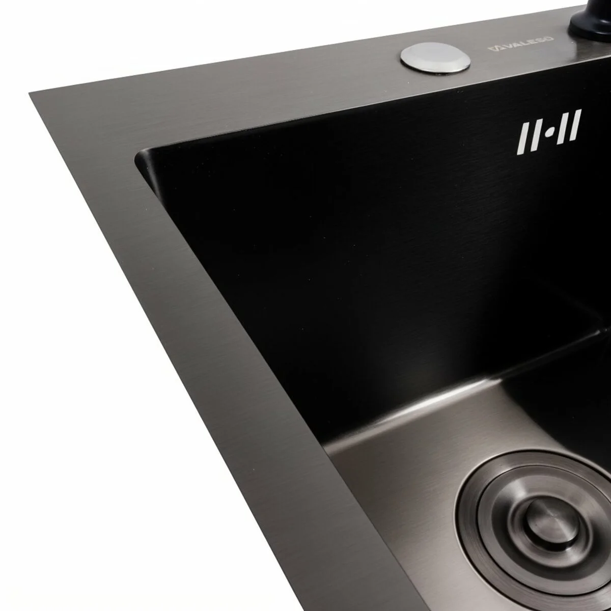Мийка для кухні чорна VALESO виготовлена з нержавіючої сталі SUS 201 з PVD покриттям товщиною 3.0/0.8, що гарантує її довговічність. Покриття PVD мийки захищає її від подряпин потемніння та нальоту. Така кухонна мийка не боїться високих температур та впливу засобів побутової хімії.