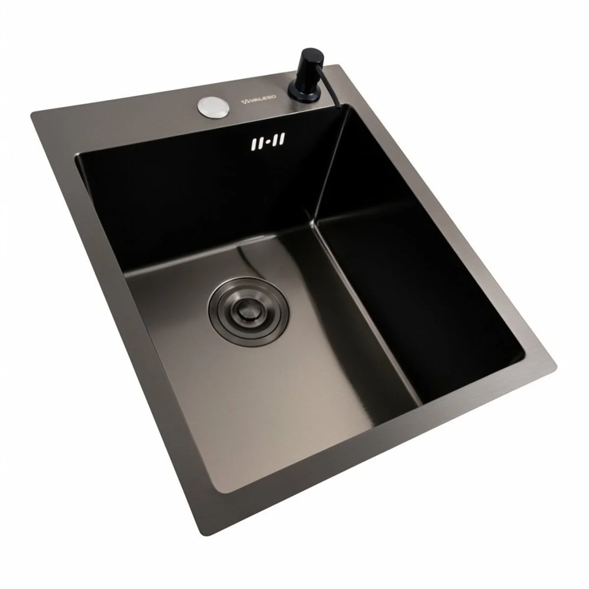 Кухонна мийка PVD чорна 40*50 VALESO Handmade (сифон крулий 3,0/0,8)