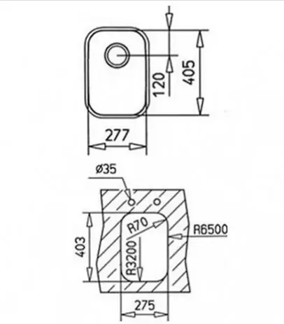 * розміри: Загальні: 280*406 мм, Чаша: 480*406 мм, глибина: 180 мм,Ширина кухонної секції: 45см