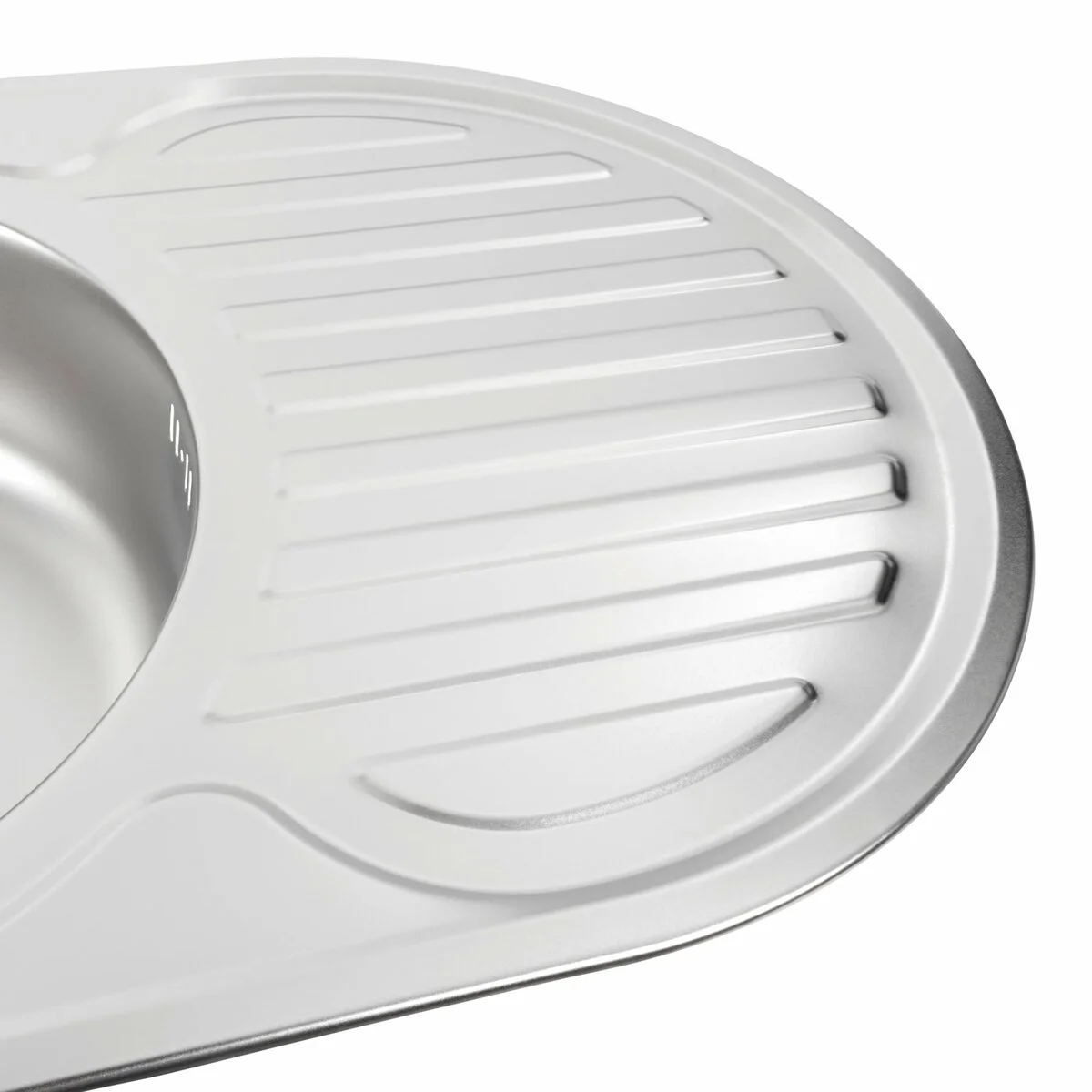 Кухонна мийка Valeso 7750 це оптимальне рішення для кухні невеликих та середніх розмірів. Лаконічний дизайн овальної форми добре пасує різним інтер’єрам кухні, а крило сушки дозволить сушити посуд та ставити гаряче кухонне приладдя.