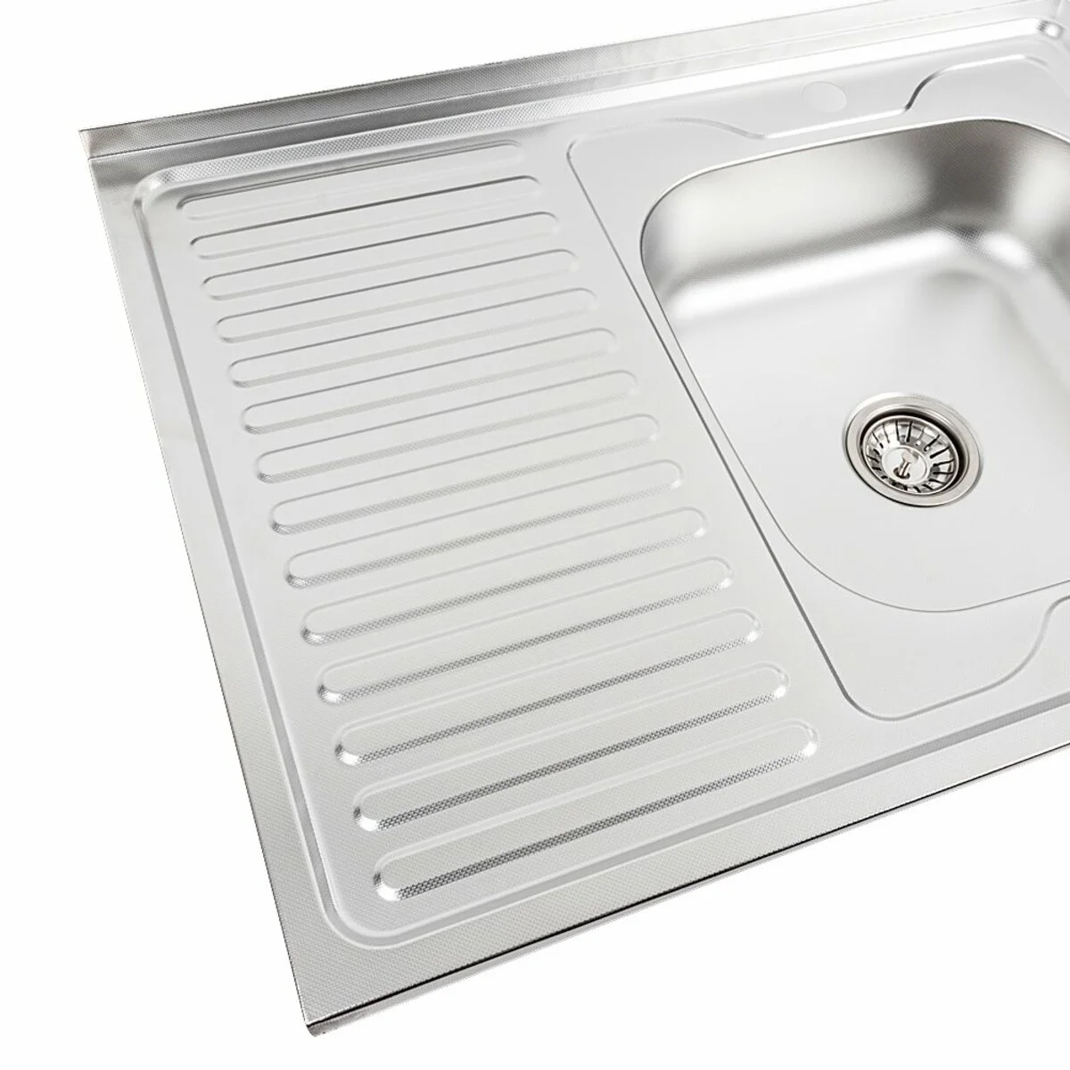 Нержавіюча сталь SUS 201 добре поєднується з фактурою різних матеріалів та кольорами кухонного інтер’єру. Мийка може мати ліве та праве крило сушки (L або R), з відповідним отвором для змішувача.