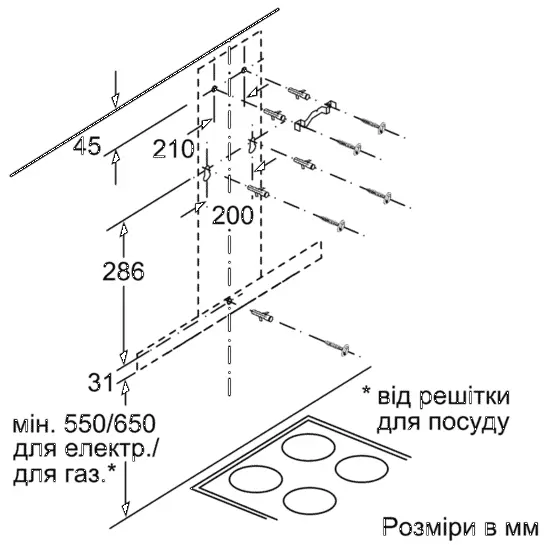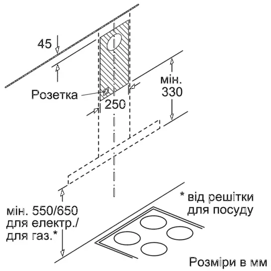 * Для роботи витяжки в режимі рециркуляції потрібен комплект для режиму рециркуляції або модуль cleanAir (окремо)