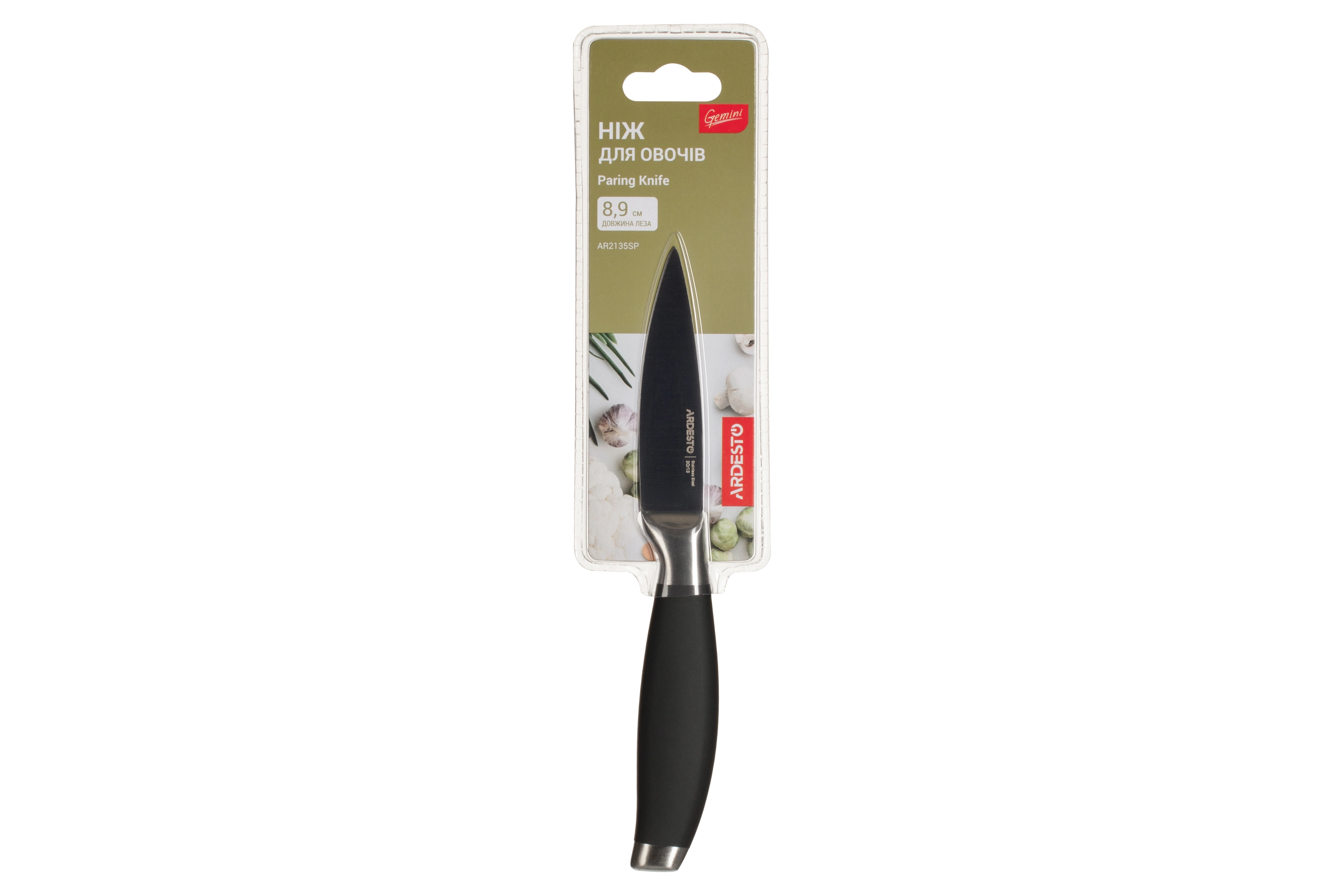 Кухонний ніж для овочів Ardesto Gemini, 8.9см, нержавіюча сталь, пластик, чорний