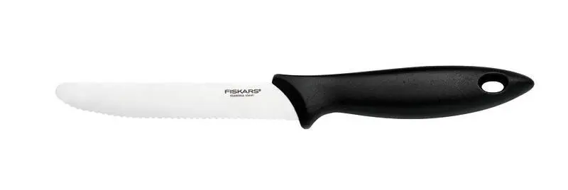 Кухонний ніж для томатів Fiskars Essential, 11.5см, нержавіюча сталь, пластик, чорний