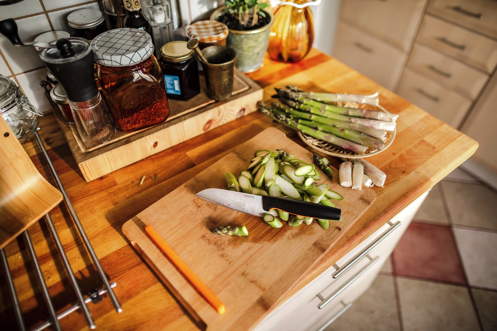 Малий кухарський ніж Fiskars Functional Form розроблений для легкої щоденної роботи і простий у догляді. Дуже добре підходить для більшості завдань на кухні.