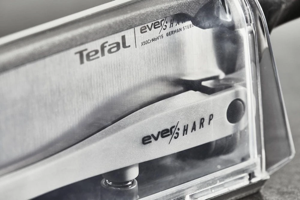 Кухонний ніж кухарський Tefal Eversharp, 16.5см, з чохол-точило нержавіюча сталь, пластик, чорний
