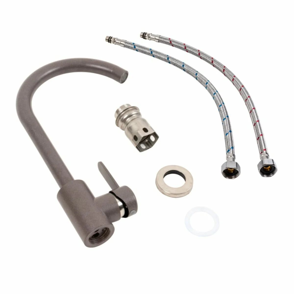 Але це ще не все! Ви можете замовити змішувач у кольорі, який ідеально вписується в дизайн вашої мийки зі штучного каменю. Також у комплекті ви отримаєте гнучку підводку та кріплення для безпроблемного встановлення.
