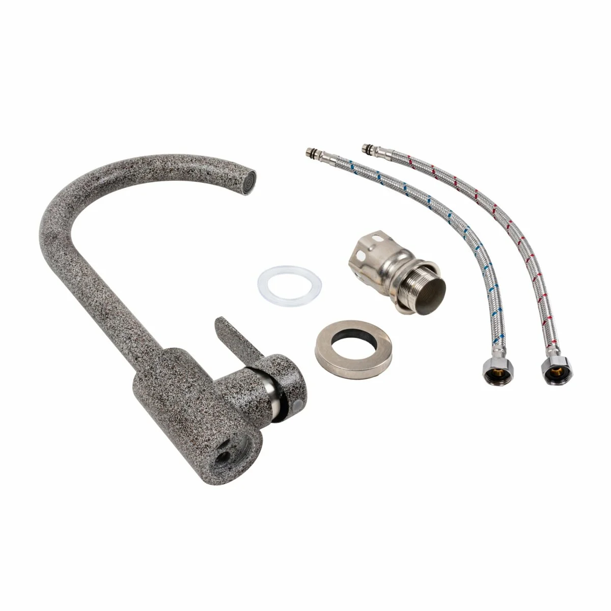 - Комплектация змішувач, кріплення, гнучка підводка