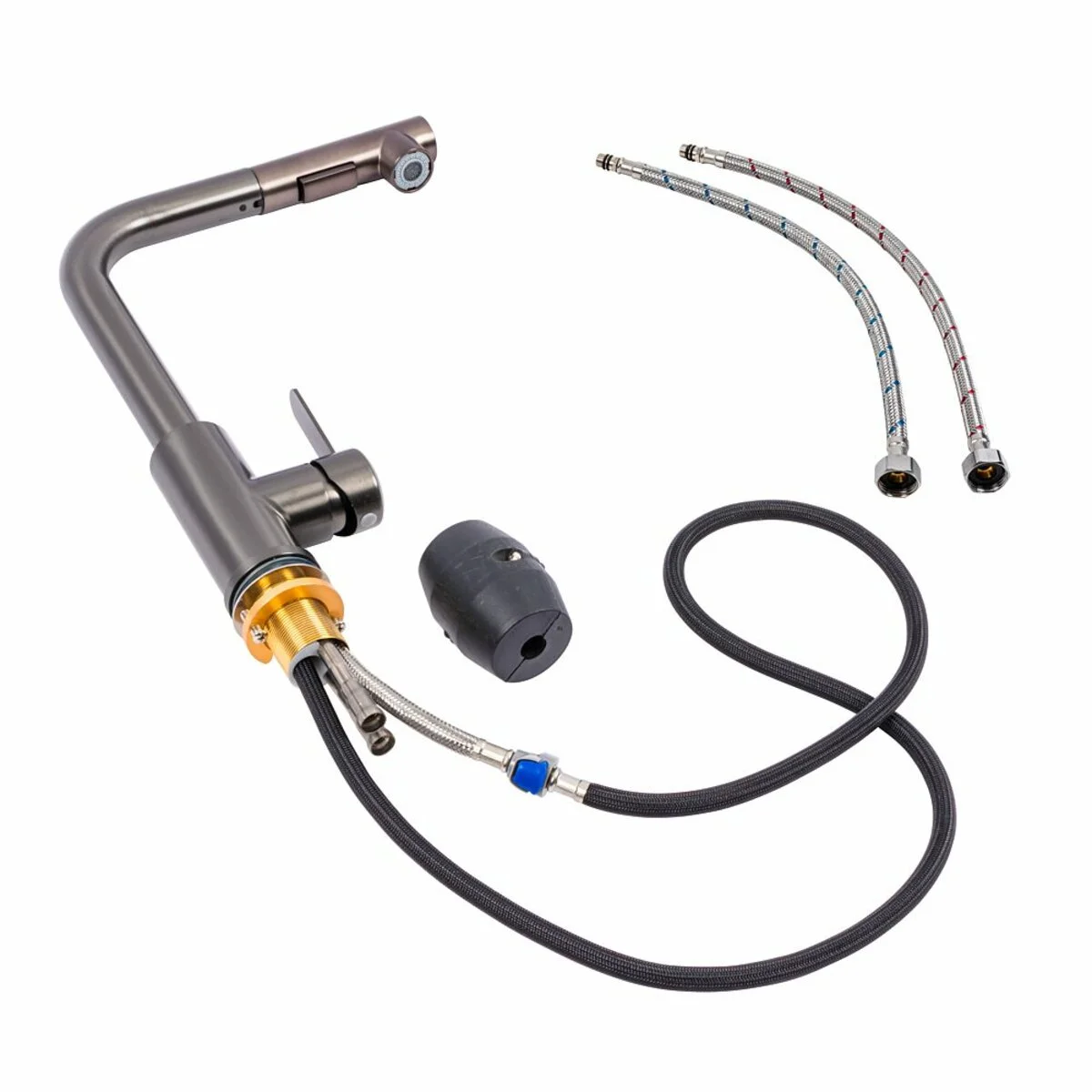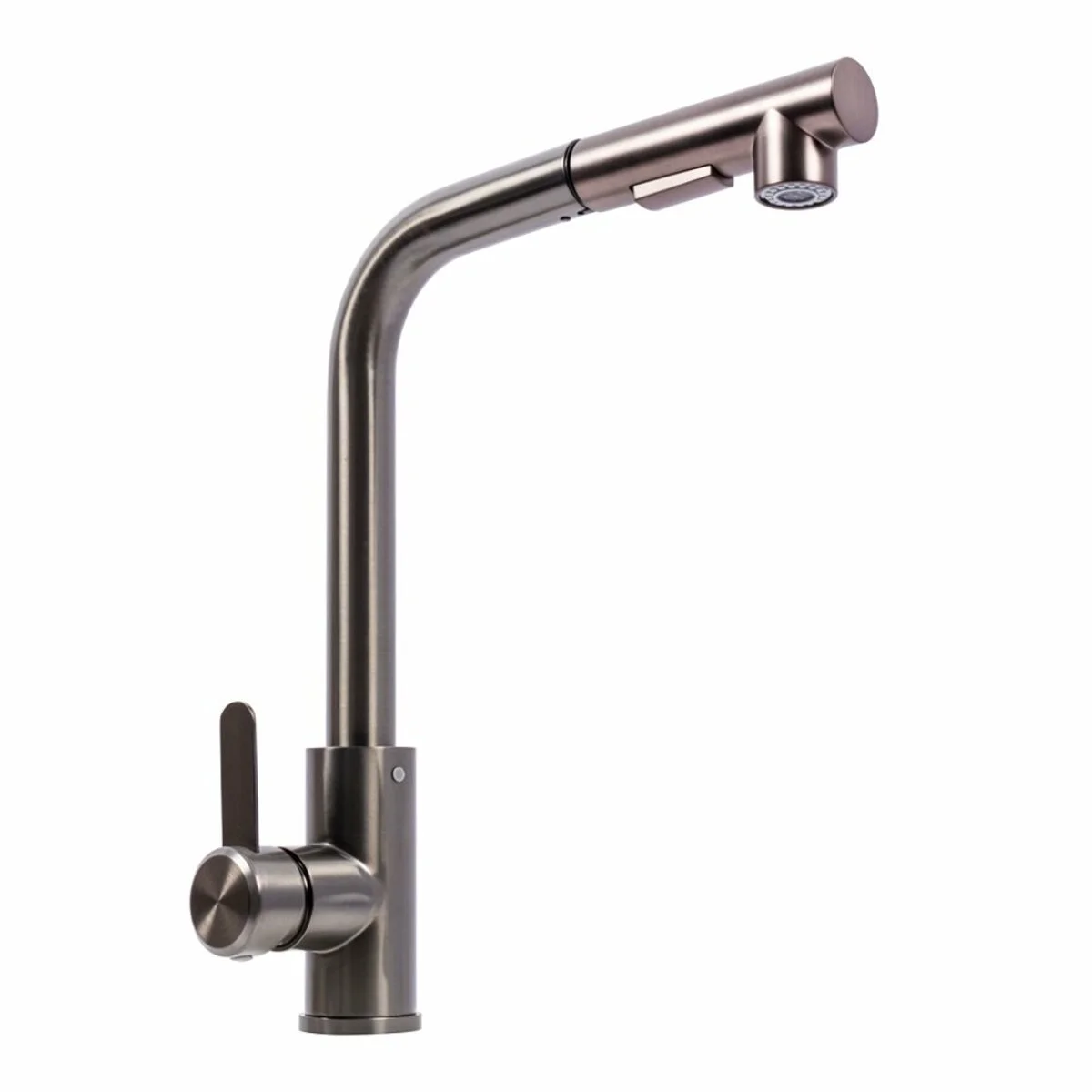 Кухонний змішувач Platinum FC-3 з висувною лійкою у стильному PVD чорному кольорі — це функціональне та елегантне рішення для вашої сучасної кухні. Він поєднує в собі практичність та високу якість матеріалів, забезпечуючи комфорт у щоденному використанні.
