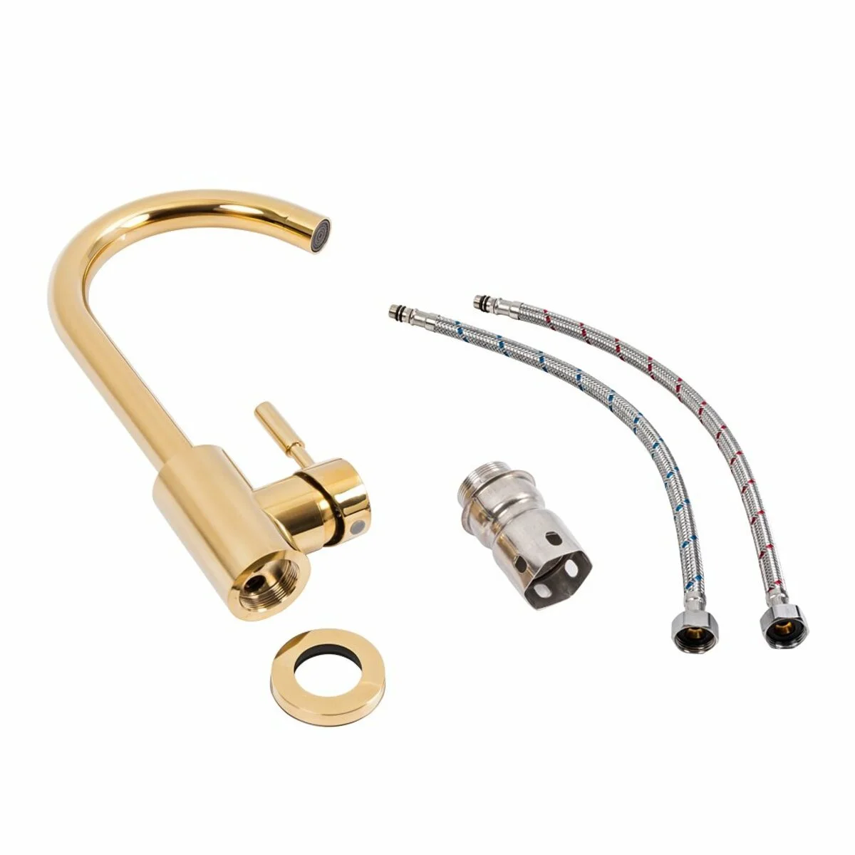 Елегантний кухонний змішувач Valeso NES-56A у витонченому золотому покритті PVD — це акцентний елемент для сучасної кухні. Його лаконічна форма та благородний колір створюють враження вишуканості та стилю.