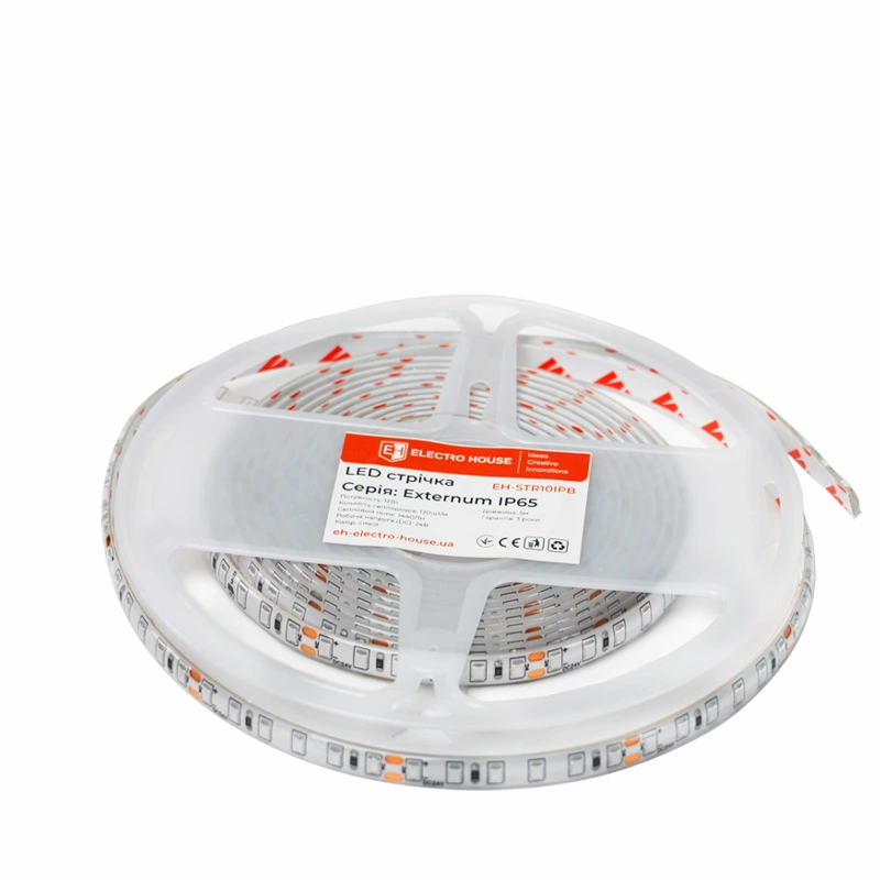 <Светодиодные ленты серии Externum IP65 отличаются высокой яркостью и равномерностью освещения благодаря высокой плотности светодиодов. LED лента содержит 120 диодов на метр. Ее можно использовать в помещениях с повышенной влажностью, запыленностью или вне помещений. Лента помещена в водонепроницаемую основу из прозрачного силикона и имеет степень защиты IP65. На обратную сторону нанесен качественный двусторонний скотч 3М для надежного монтажа на поверхность. Она используется для решения самых разнообразных задач интерьерного и экстерьерного дизайна, для создания уличной рекламы и организации основного освещения. Это создание световых акцентов на различных архитектурных объектах и их подсветка, подсветка витрин, стеллажей, мебели, зеркал, ступенек, рекламные световые надписи и конструкции, подсветка для автомобиля, подсветка или основное освещение в ванной комнате или другом помещении с повышенной влажностью. Вариантов применения светодиодной ленты EH-STR10IPB гораздо больше, и они ограничены только Вашей фантазией. LED лента 12Вт 24В SMD2835 120 диодов, синий, серия Externum IP65, гарантия 3 года бренда ElectroSpace принадлежит к премиум-классу, отличается долговечностью и имеет гарантию 3 года. Все электрические соединения при эксплуатации вне помещения или в помещении с повышенной влажностью должны быть хорошо изолированы и защищены от внешних неблагоприятных воздействий, а сама светодиодная лента защищена от прямого попадания воды. Нужно избегать непосредственного погружения изделия в воду. Можно использовать алюминиевый профиль для дополнительной защиты и эффективного охлаждения, это существенно увеличивает срок эксплуатации и позволяет организовать световое акцентирование или создавать разнообразные световые эффекты. Варто приділити увагу підбору блоку живлення - для експлуатації при підвищеній вологості він повинен бути герметичним, тобто мати клас захисту не нижче IP65 і мати запас потужності не менше 20%, бажано, щоб запас був більше. *Ціна вказана за 1 метр. *Ця світлодіодна стрічка продається кратно п'яти метрам.