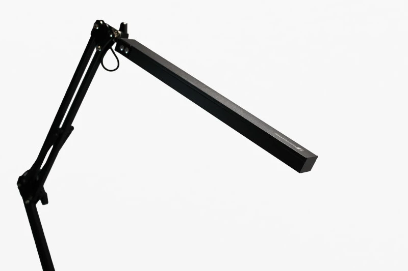 Светильник питается через USB-A порт, что делает его универсальным в использовании — его можно подключать к компьютеру, адаптеру или даже заряжать от павербанка, что удобно для мобильного образа жизни. Струбцина обеспечивает надежное крепление к столешнице или полке, а минималистичный черный цвет придает элегантность изделию.