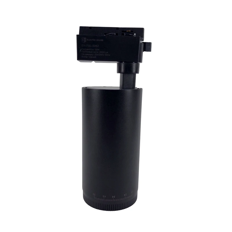 LED трековый светильник Graceful light с функцией ZOOM 30 Вт 4100К 2500 Lm, черный EH-TGL-30BZ это стильный и функциональный светильник, который позволяет изменять направление освещения в широчайших пределах. Его можно вращать на 90 градусов по вертикали и на 360 градусов по горизонтали. Благодаря функции ZOOM можно фокусировать световой поток, делая освещение рассеянным или узконаправленным. Световой поток регулируется от 15 до 55 градусов. Регулировка фокусировки светового потока производится вращением линзы. На корпусе нанесена шкала для возможности точной регулировки – это позволяет быстро и точно настроить один или несколько светильников для получения нужного эффекта освещения.