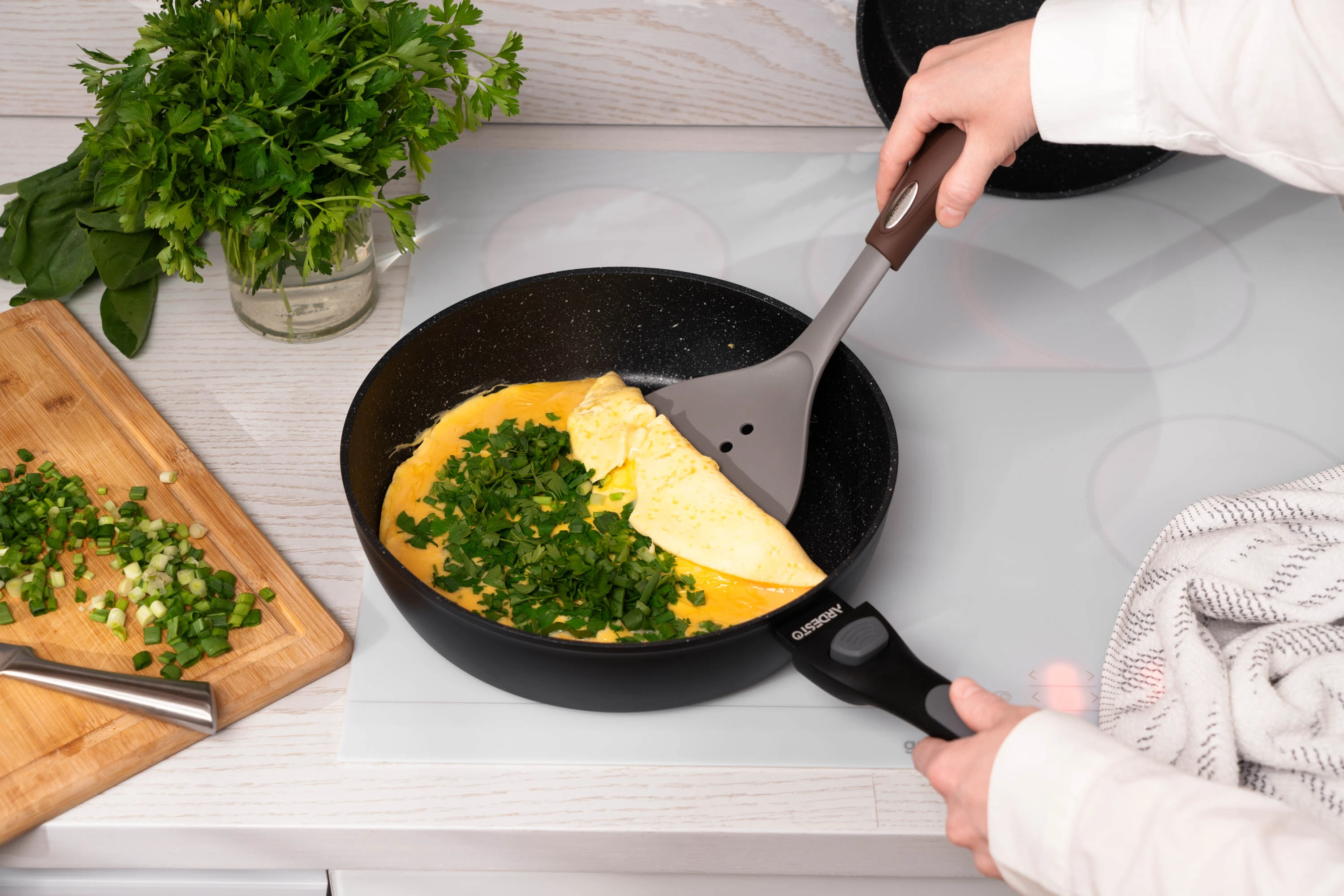 Кухонна лопатка ARDESTO Gemini є предметом кухонного начиння, яке використовують для приготування та сервірування страв. Розмір виробу становить 33 × 13 × 3,5 см. Лопатку виготовлено з термостійкого нейлону, який забезпечує делікатний контакт із протипригарними поверхнями без пошкоджень та подряпин. Руків’я з пластику з вставкою з нержавіючої сталі. Можна мити аксесуар у посудомийній машині.