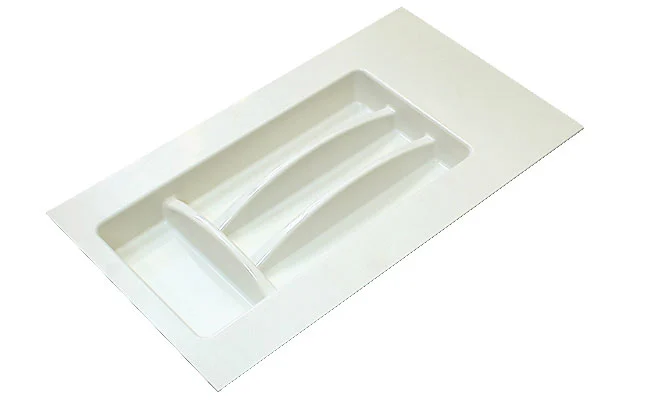 Лоток для столових приборів, матеріал: пластмаса, колір: білий, товщина 3 мм, номінальна довжина 500 мм, висота 50 мм, для ширини ящика 300 мм.