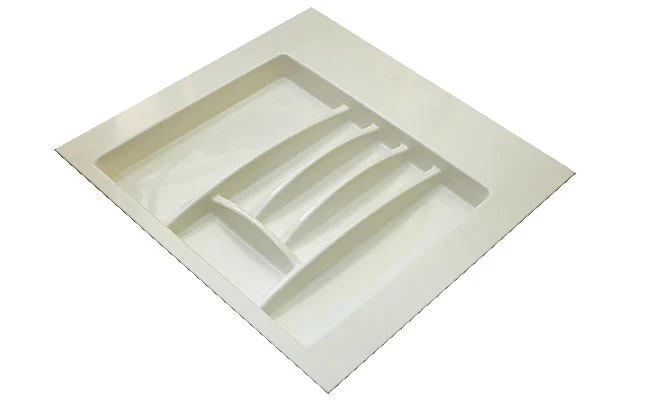 Лоток для столових приборів, матеріал: пластмаса, колір: білий, товщина 3 мм, номінальна довжина 500 мм, висота 50 мм, для ширини ящика 600 мм.