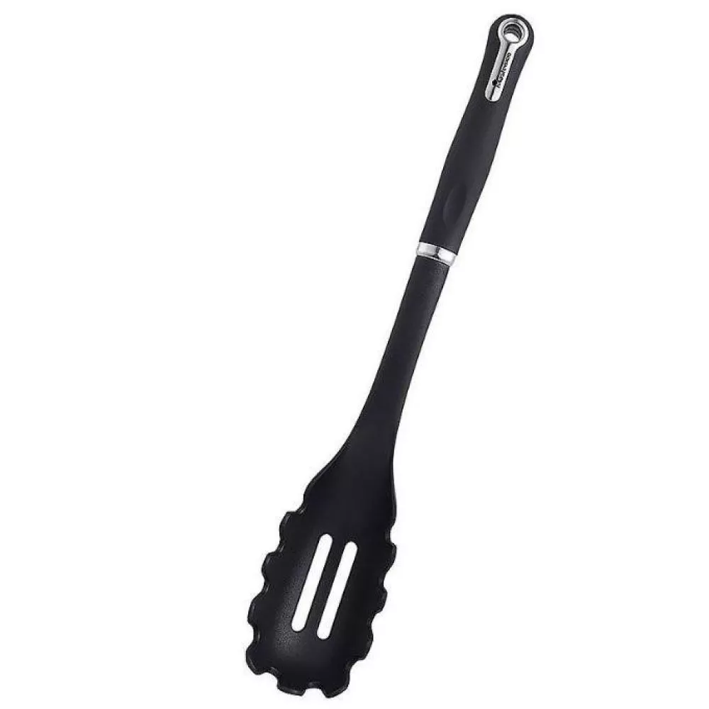 Ложка для спагеті MasterPro Foodies - кухонний прилад з антипригарним покриттям. Ці кухонні ложки ідеально підходять для того, щоб уникнути дратівливого скупчення залишків їжі. Вона ідеально підходить для обробки довгих макаронних виробів і макаронних виробів ніжної текстури, які схильні до здавлювання. Ця ложка легко чиститься і не залишає подряпин на будь-якій поверхні. Крім того, вона дуже термостійка.