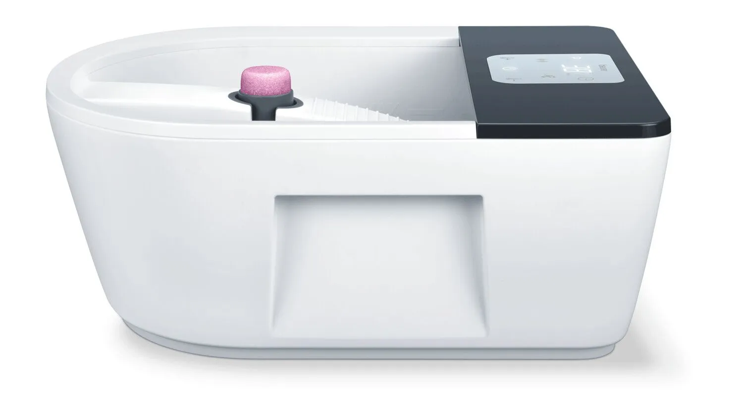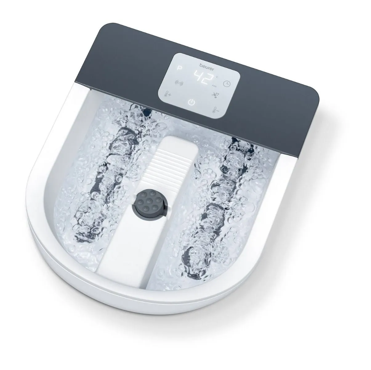 Масажна ванночка Beurer для ніг, від мережі, 3 насадки, підтрим. температури води, сенс. керув., біл