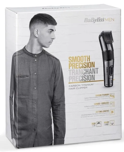 Babyliss E978E — это универсальное устройство для стрижки и окантовки волос, оснащенное стальными лезвиями с титановым покрытием. В комплекте есть триммер для детальной обробки контурів та кейс для зручного зберігання.