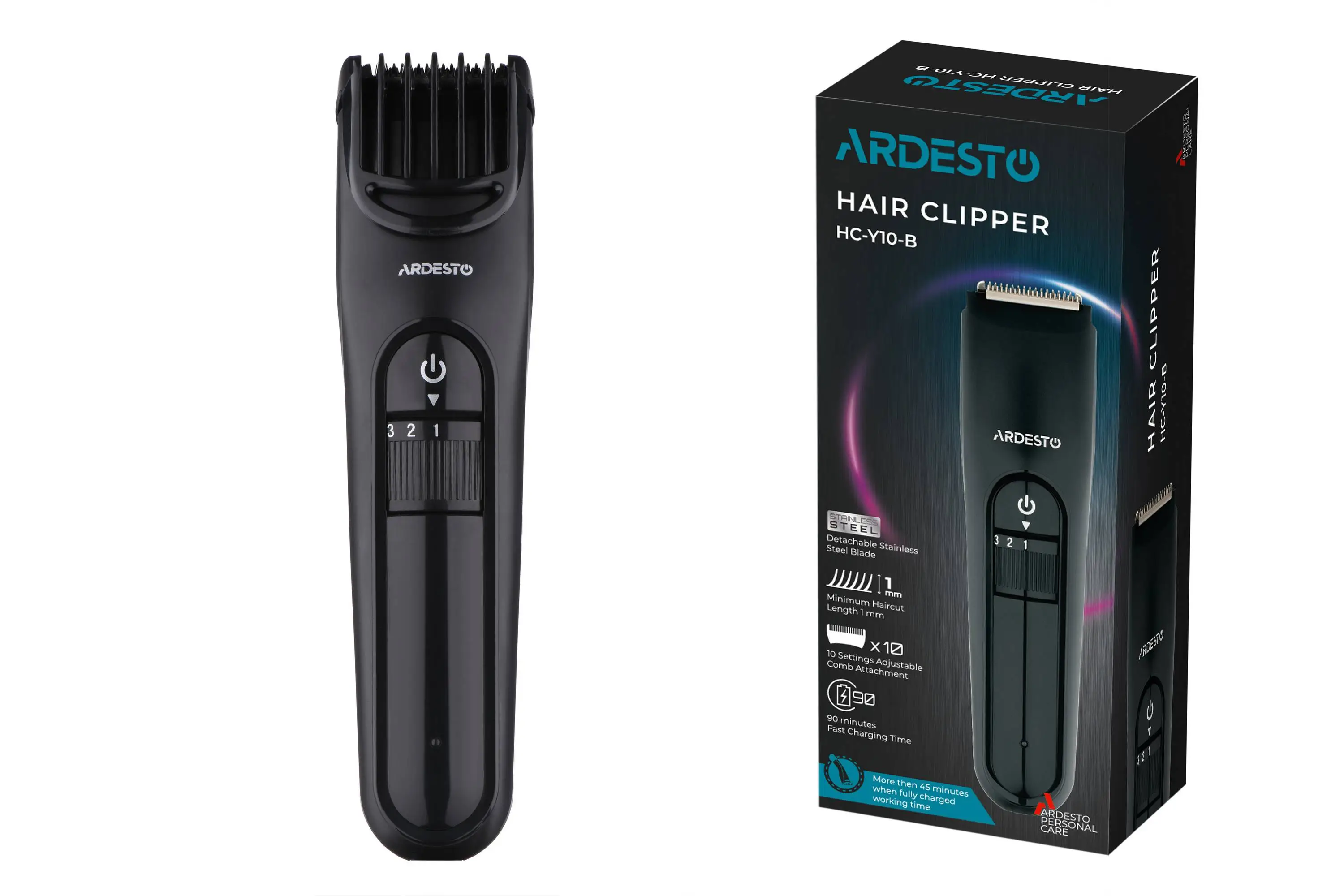 Ardesto HC-Y10-B — это компактная и доступная машинка для стрижки, подходящая для регулярного домашнего ухода. Она оснащена одним насадочным гребнем и стальными лезвиями, обеспечивающими чистый и ровный срез. Модель поддерживает питание как от сети, так и от аккумулятора, что делает её универсальной и удобной в использовании.