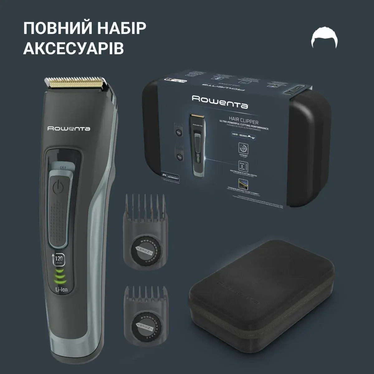 Машинка для стрижки Rowenta Advancer, для бороды, усов, головы, сеть+акум., роторный мотор, насад