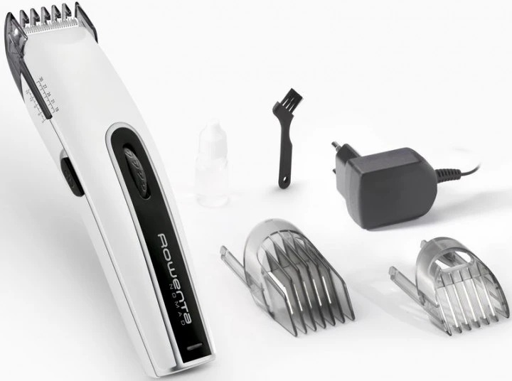 Машинка для стрижки Rowenta Nomad, сеть+аккум., роторный мотор, насадок-2, кейс, сталь, бело-черный