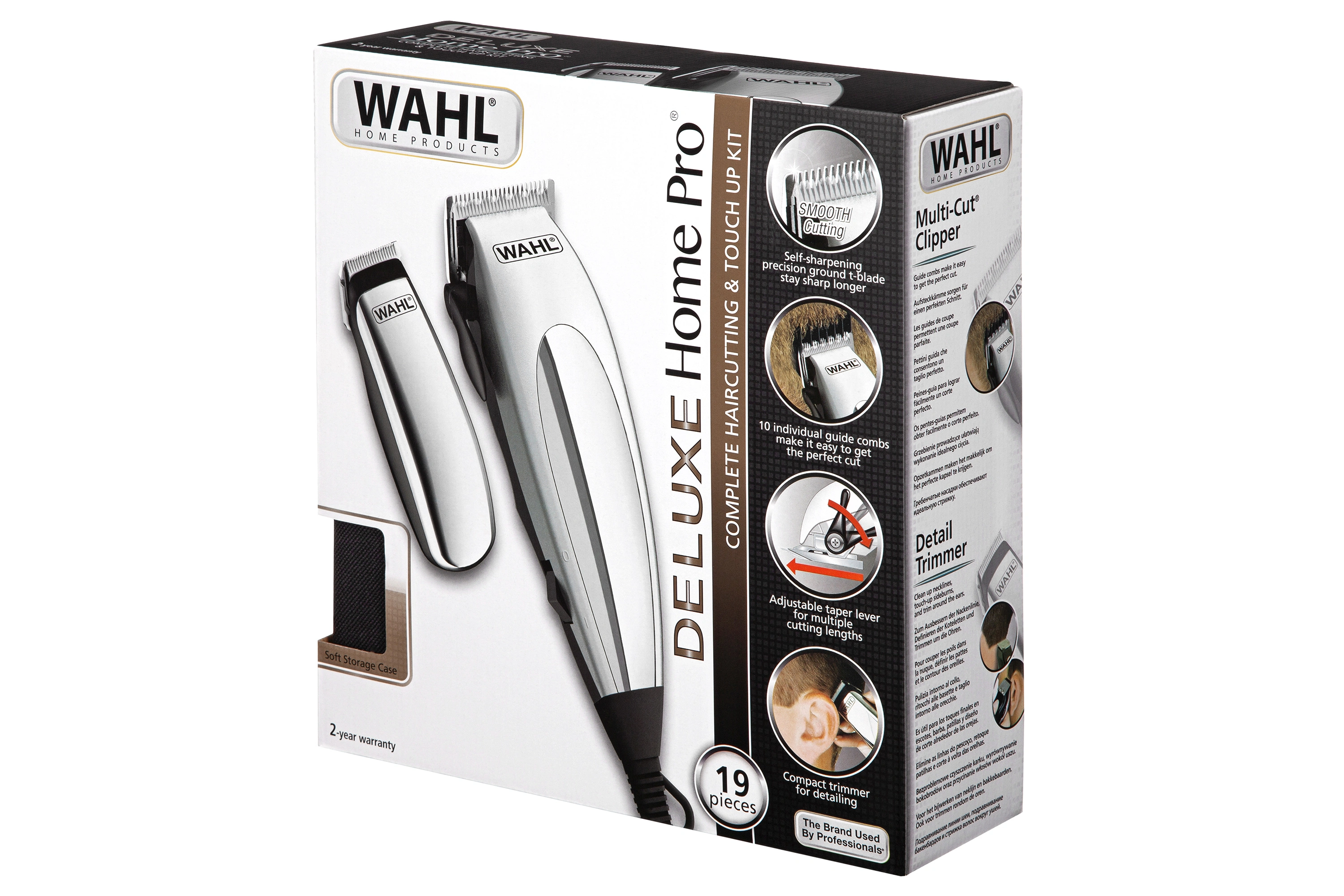 WAHL HomePro Deluxe Combo — это универсальный комплект для ухода за волосами и бородой, который включает в себя мощную сетевую машинку и мини-триммер. Модель создана для удобного и точного стрижения в домашних условиях.