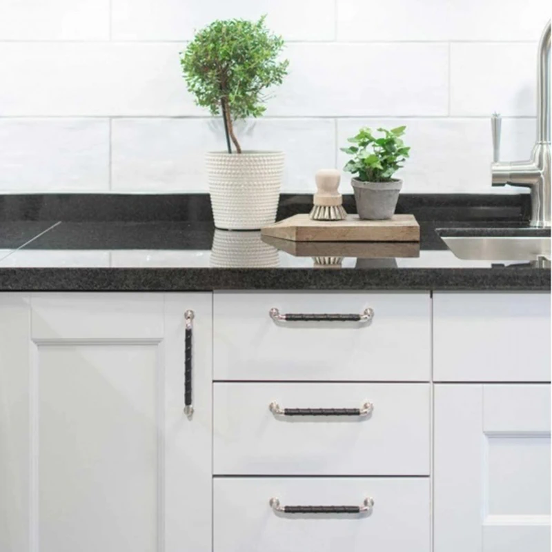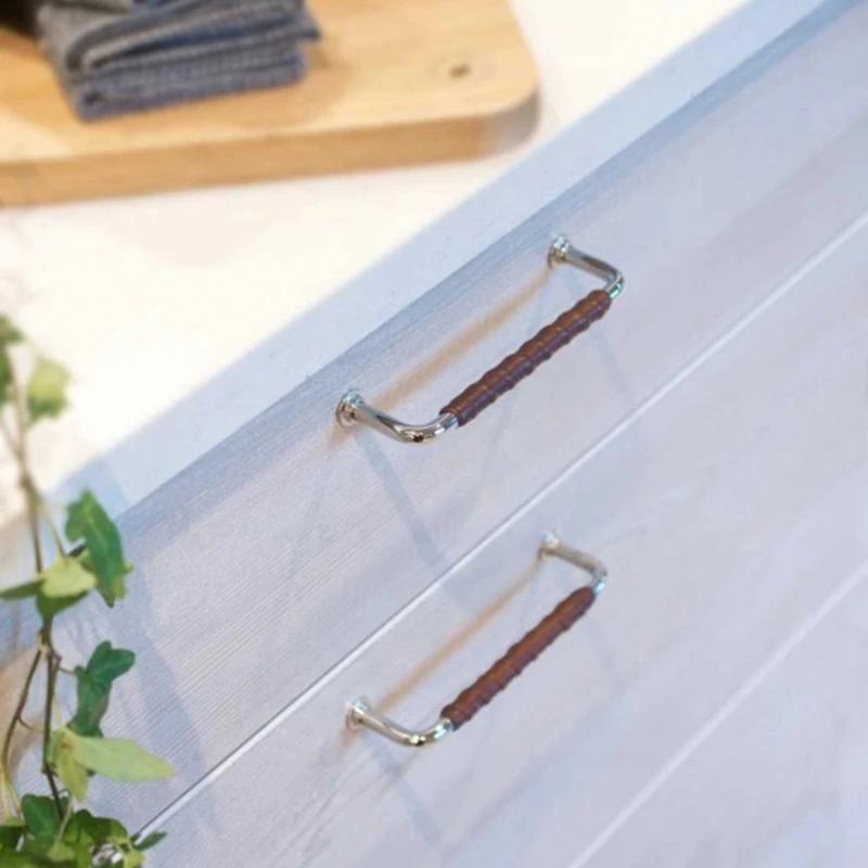 Мебельная ручка Beslag Design 330707-11 Никелированная/Натуральная кожа