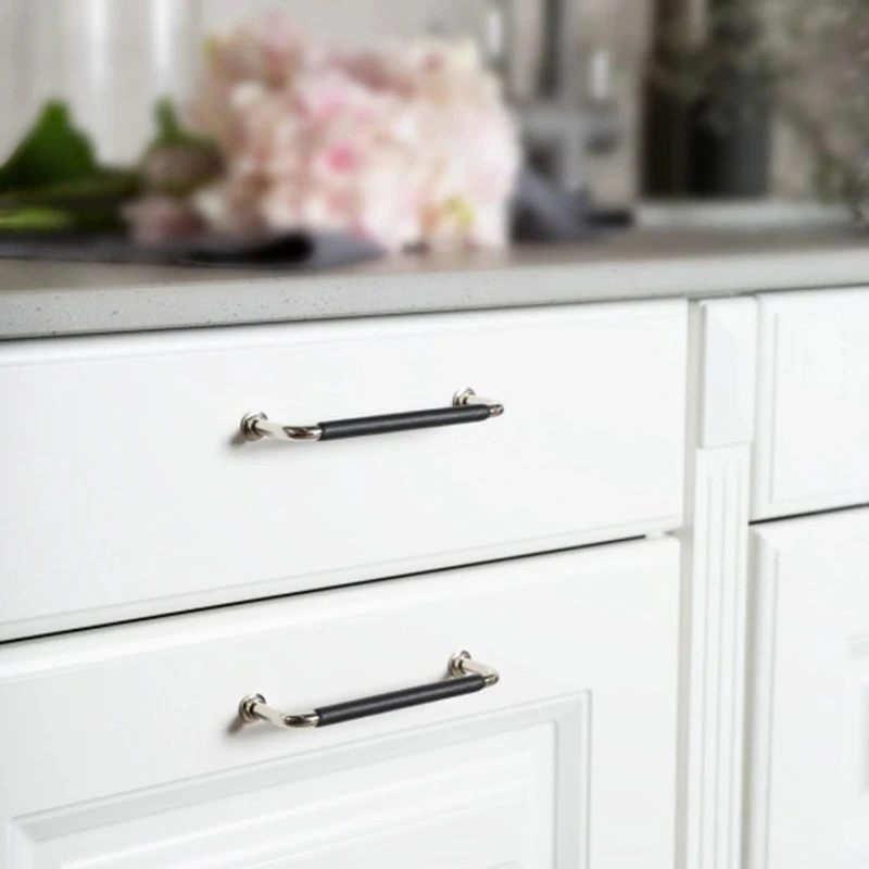 Мебельная ручка Beslag Design 330742-11 Никелированный/Черная кожа
