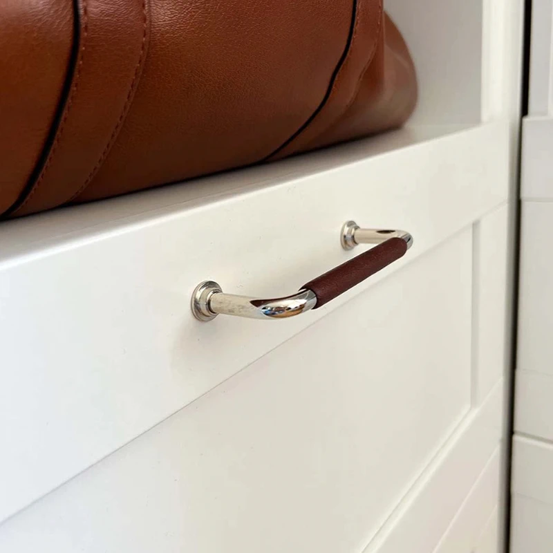 Мебельная ручка Beslag Design 330761-11 Никелированная/Коричневая кожа