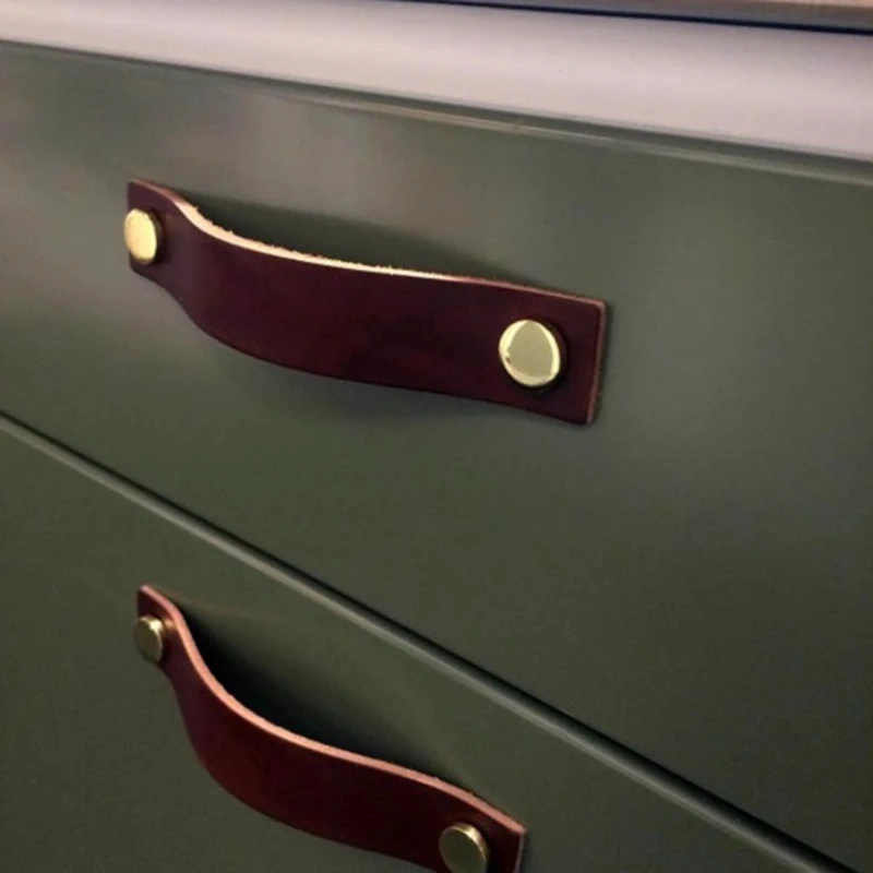 Мебельная ручка Beslag Design 333171-11 Коричневая кожа/Латунь