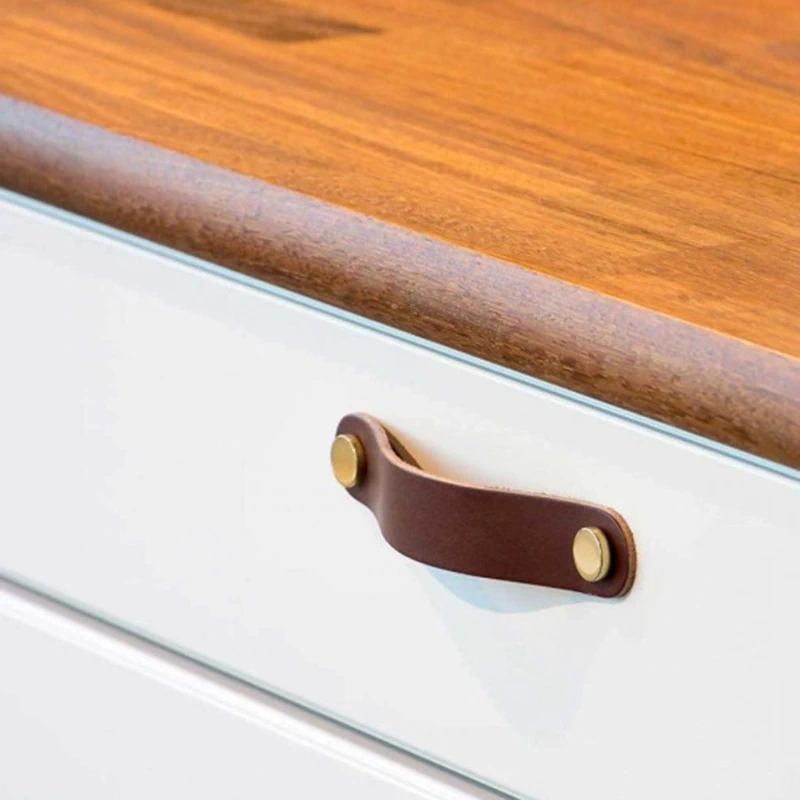 Мебельная ручка Beslag Design 333271-11 Коричневая кожа/Латунь