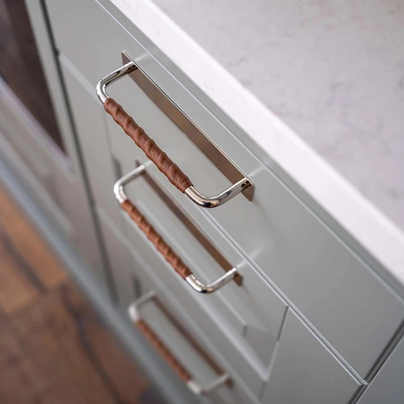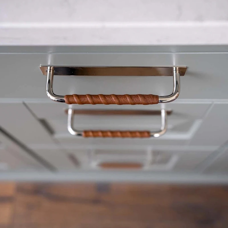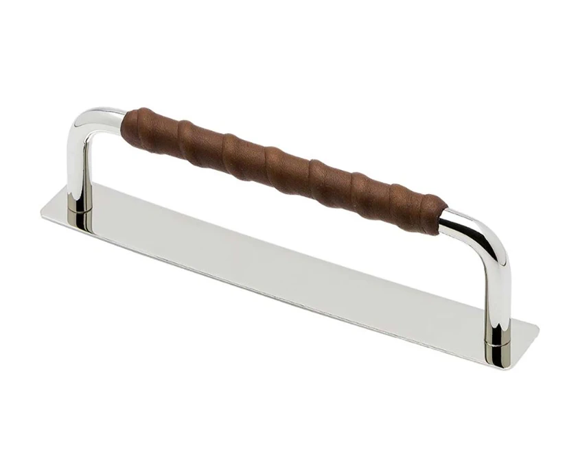 Мебельная ручка Beslag Design 336235-11 Никелированный/Коричневая кожа