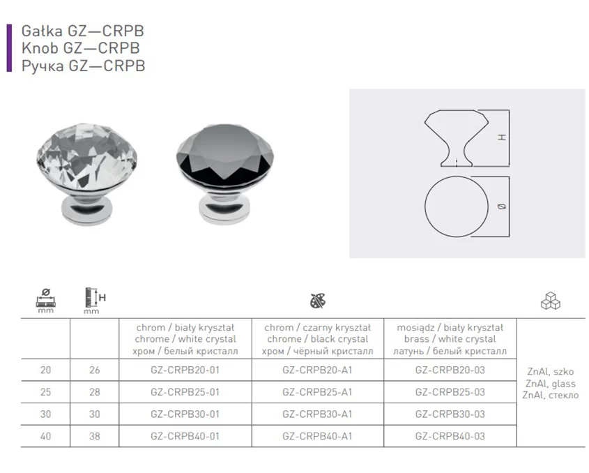 Мебельная ручка GTV Crystal Palace CRPB d 30 Хром+Черное стекло