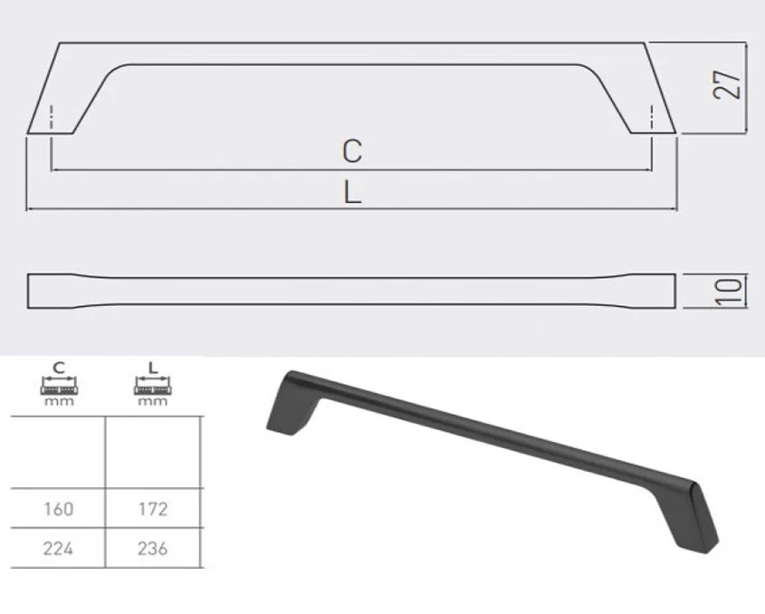 Мебельная ручка GTV UZ-G2 224 мм Черный матовый