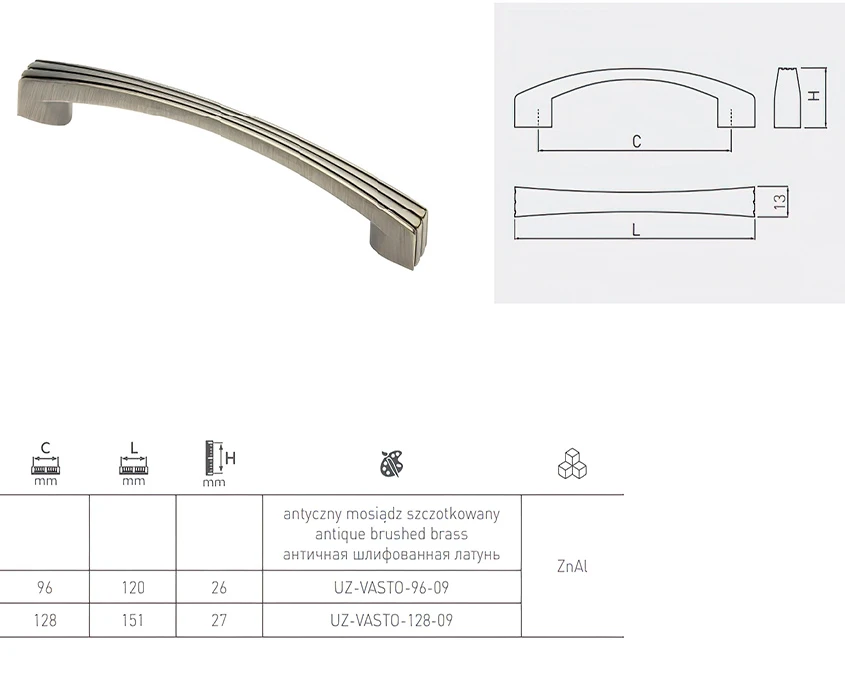 Мебельная ручка GTV VASTO 96 мм Брашированная латунь