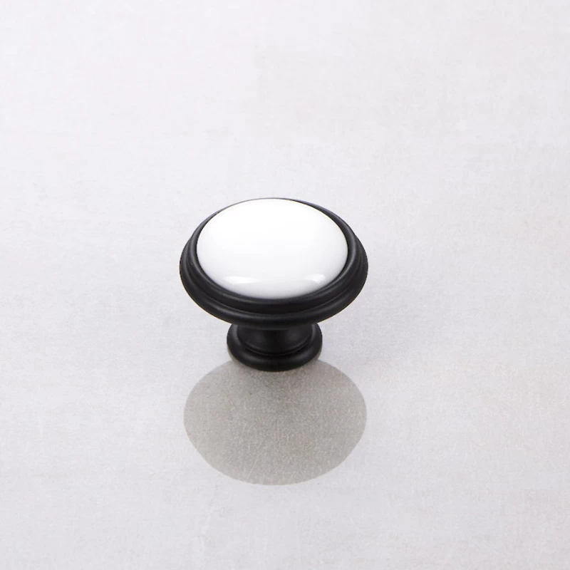 Меблева ручка-кнопка Giusti РГ 621 P77.00.00.N4G Черный матовый с белой керамикой